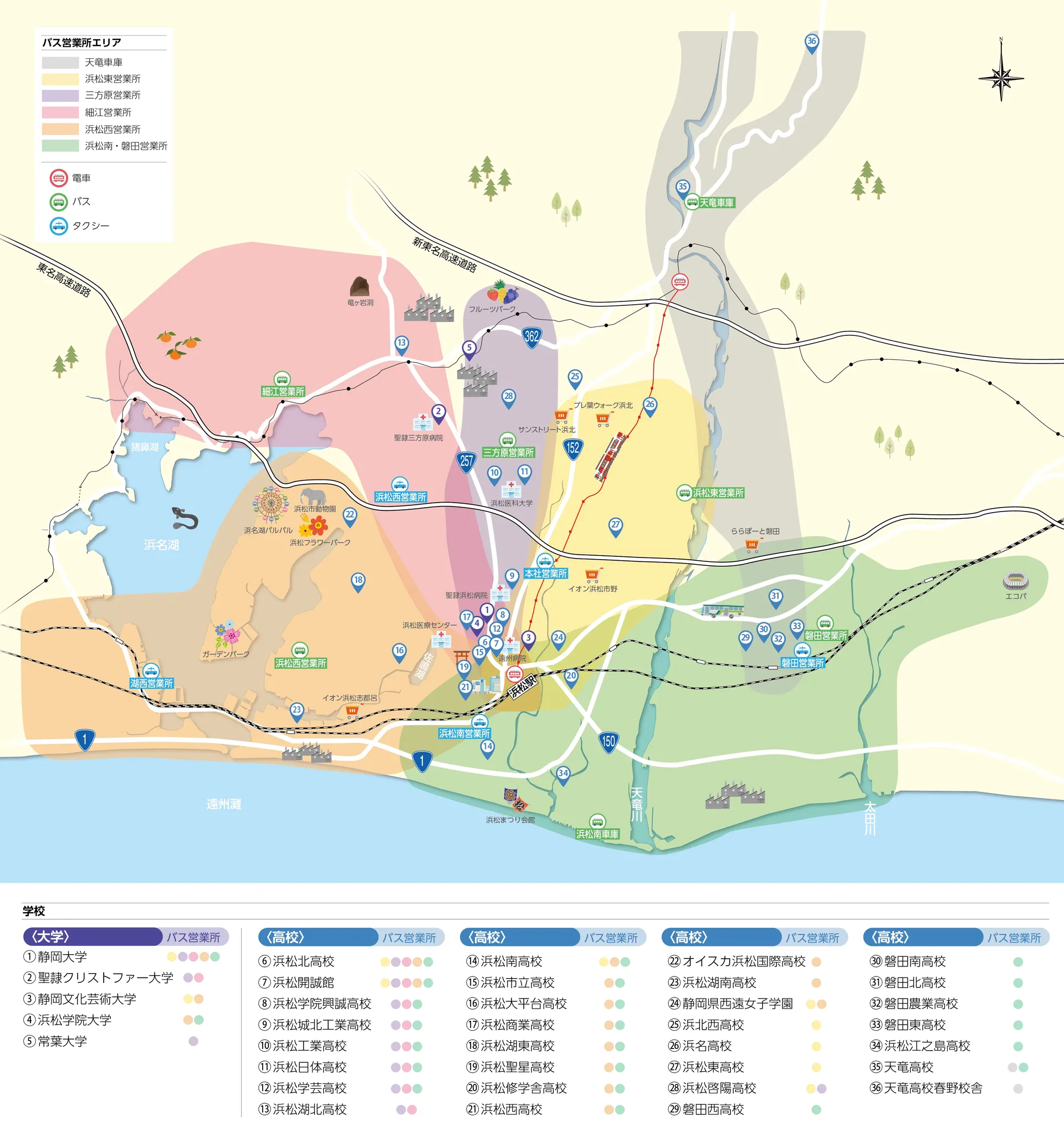 | 浜松東 | 38 | 6,503 | 笠井、高台、蒲、早出、内野台、小沢渡、上島イオン市野、浜北医大聖隷三方 原、秋葉、鹿島 |