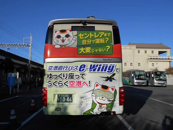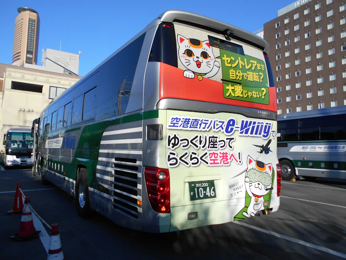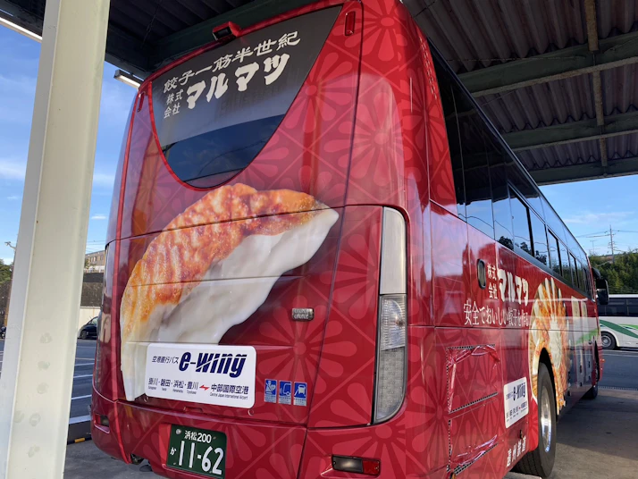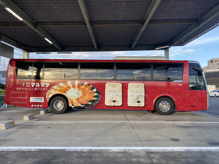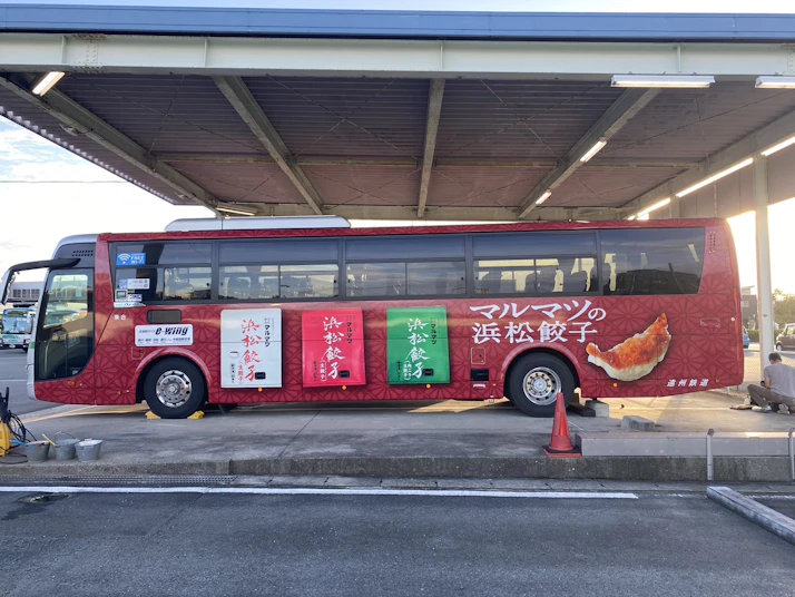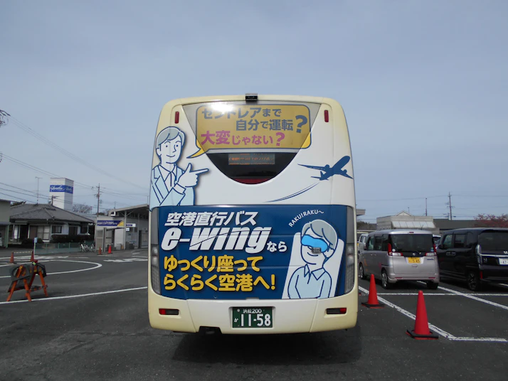 e-wingの大きな車体のガラス部分を含む背面全体を活用した広告です。高速道路走行中に背面広告は後続車へのインパクトが大きく、ブランドや商品の認知獲得に効果的です。静岡西部エリアに限らず掛川~セントレア空港までの県内外への広範囲の訴求が可能な点が魅力です。