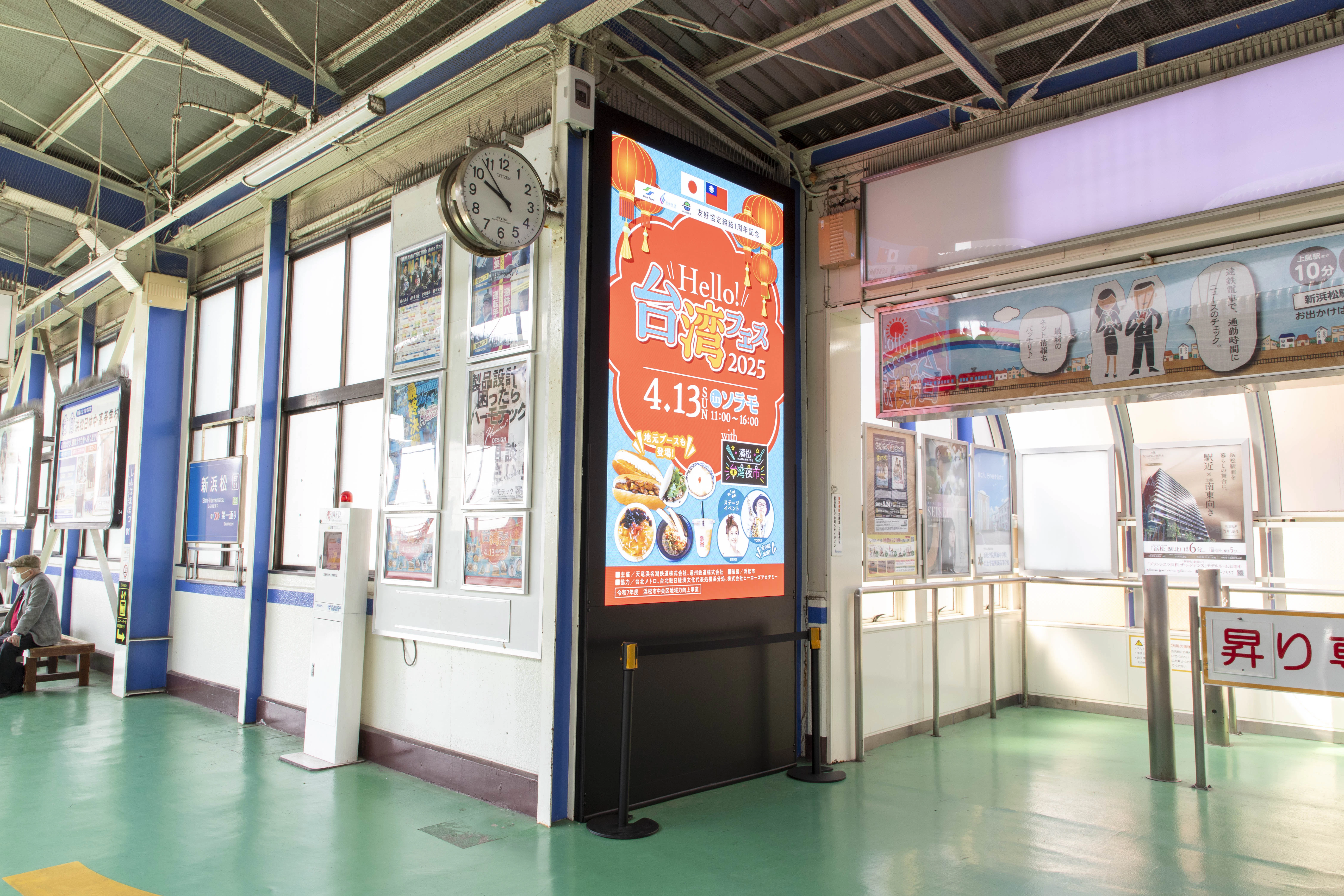 2025年に導入された最新型のデジタルサイネージで、遠鉄電車の中でも最も利用者数が多い新浜松駅に設置された注目の媒体です。