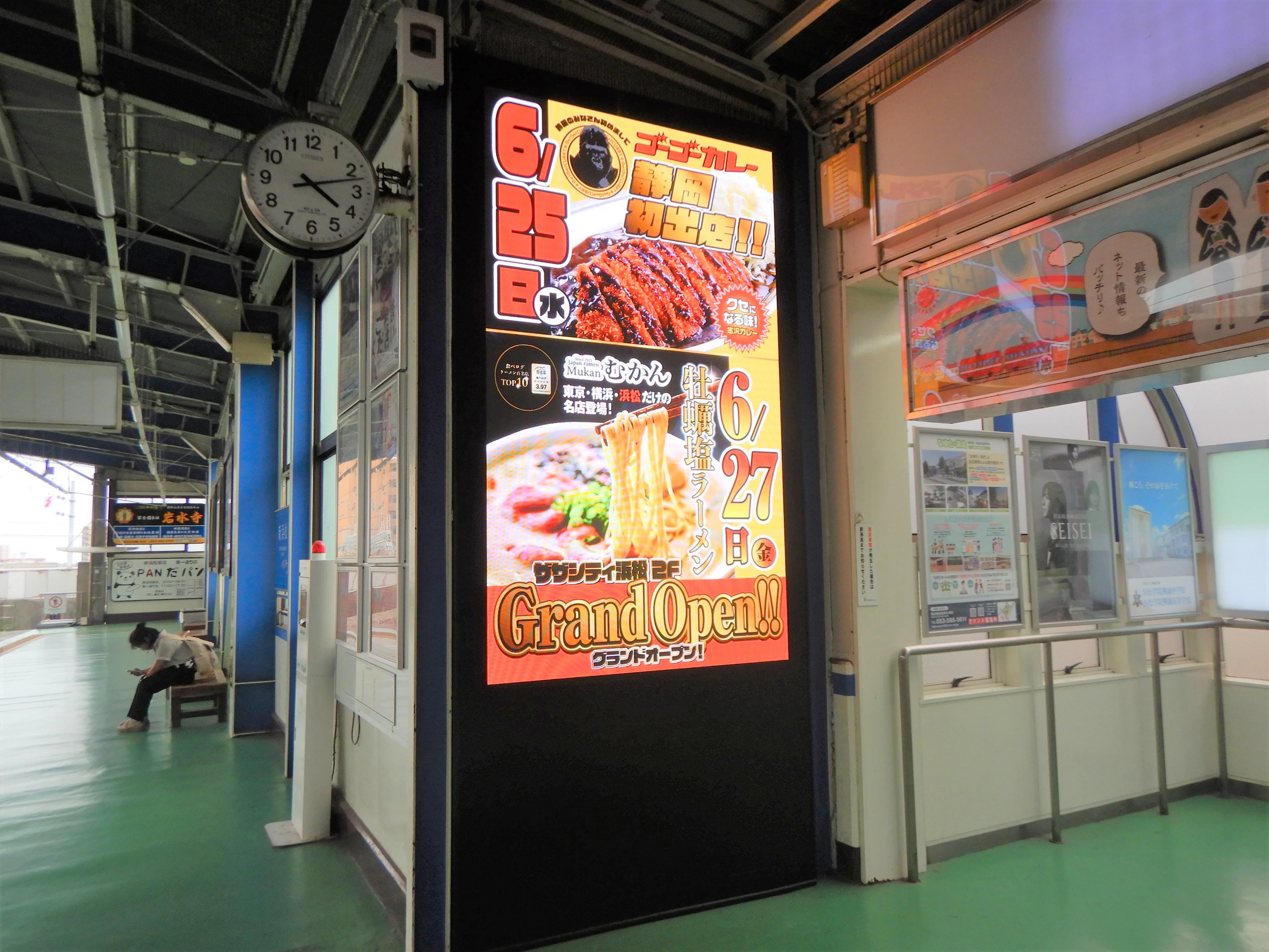 遠鉄電車の中でも利用者数トップクラスの新浜松駅に設置された大型サイネージ Impactは、明るく大きな画面で視認性抜群。